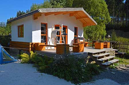 Domek letniskowy z tarasem Norwegia otynkowany fot. Ogrodosfera.pl