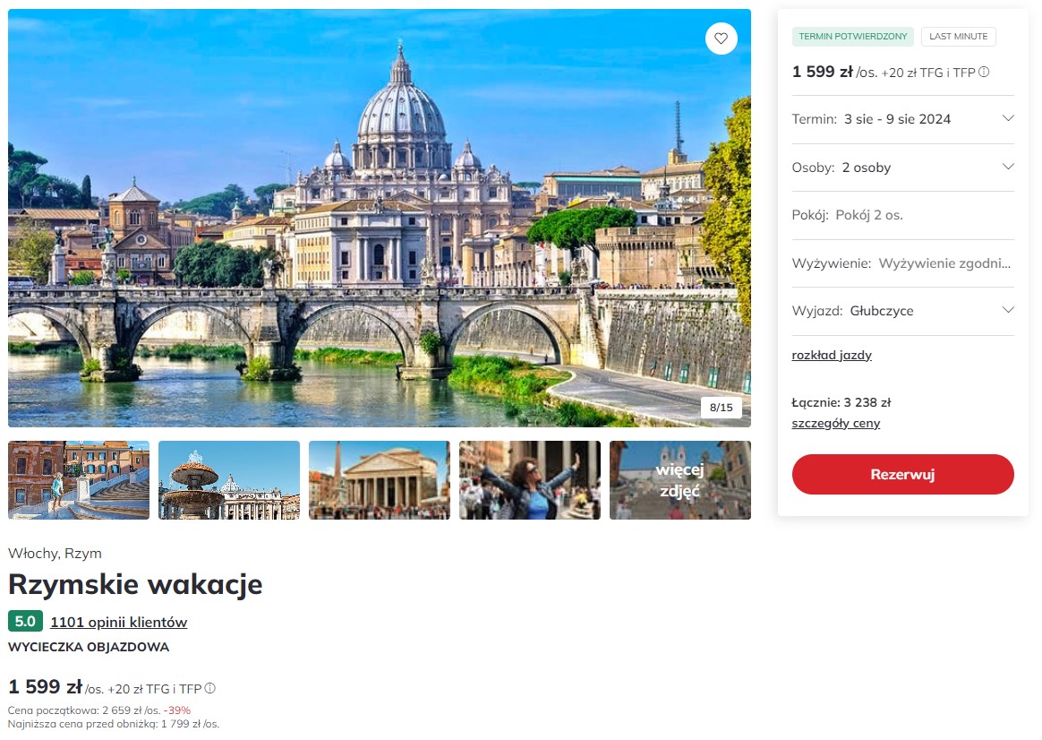Jeśli na poniższym screenie widzisz miasto wylotu lub termin które Ci nie odpowiadają, po przejściu do oferty możesz samodzielnie zmienić parametry wycieczki - często wtedy cena także jest bardzo atrakcyjna.