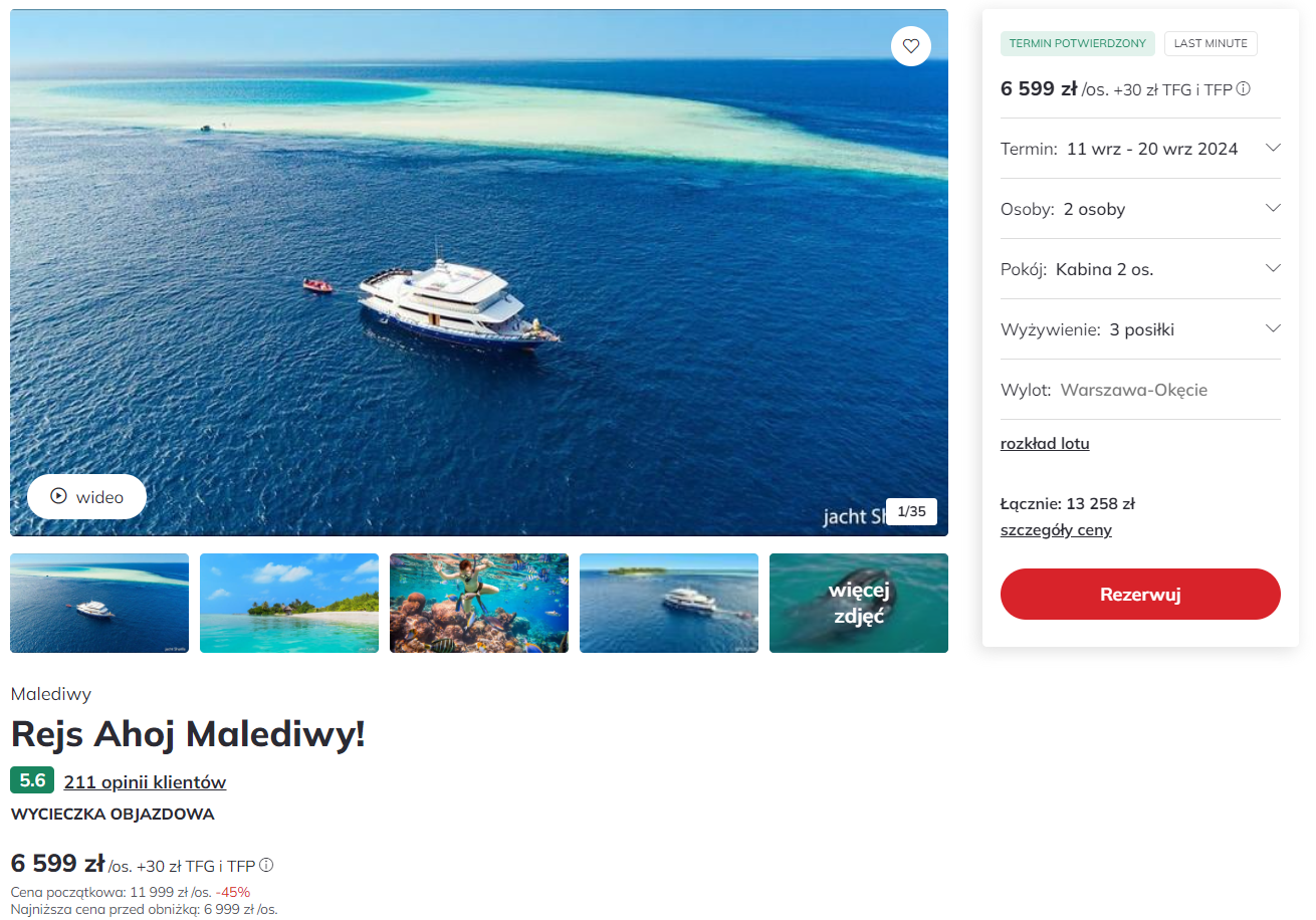 Jeśli na poniższym screenie widzisz miasto wylotu lub termin które Ci nie odpowiadają, po przejściu do oferty możesz samodzielnie zmienić parametry wycieczki - często wtedy cena także jest bardzo atrakcyjna.