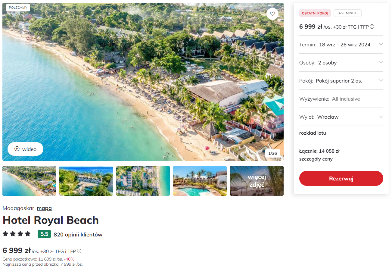 Jeśli na poniższym screenie widzisz miasto wylotu lub termin które Ci nie odpowiadają, po przejściu do oferty możesz samodzielnie zmienić parametry wycieczki - często wtedy cena także jest bardzo atrakcyjna.