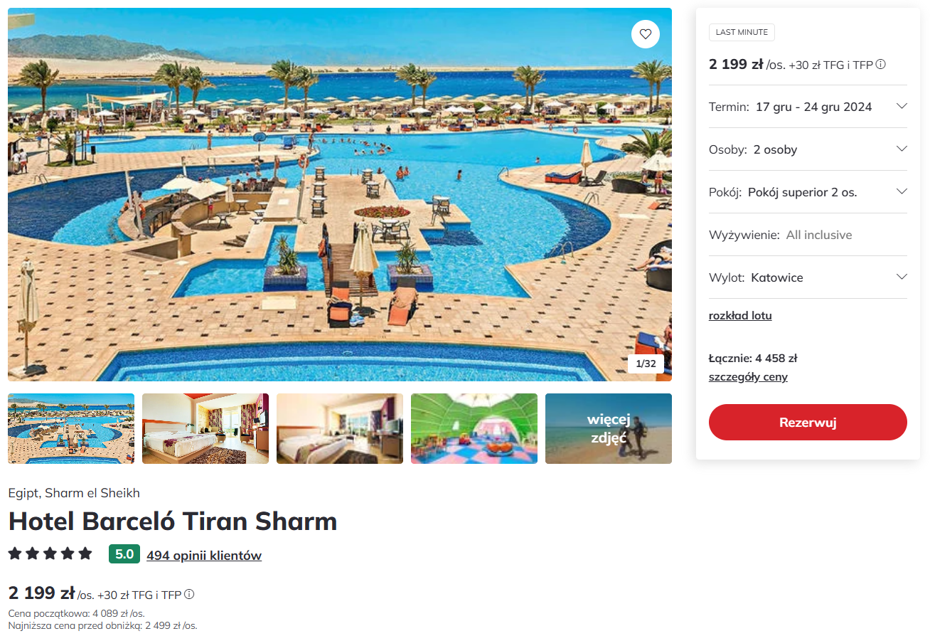 Jeśli na poniższym screenie widzisz miasto wylotu lub termin które Ci nie odpowiadają, po przejściu do oferty możesz samodzielnie zmienić parametry wycieczki - często wtedy cena także jest bardzo atrakcyjna.