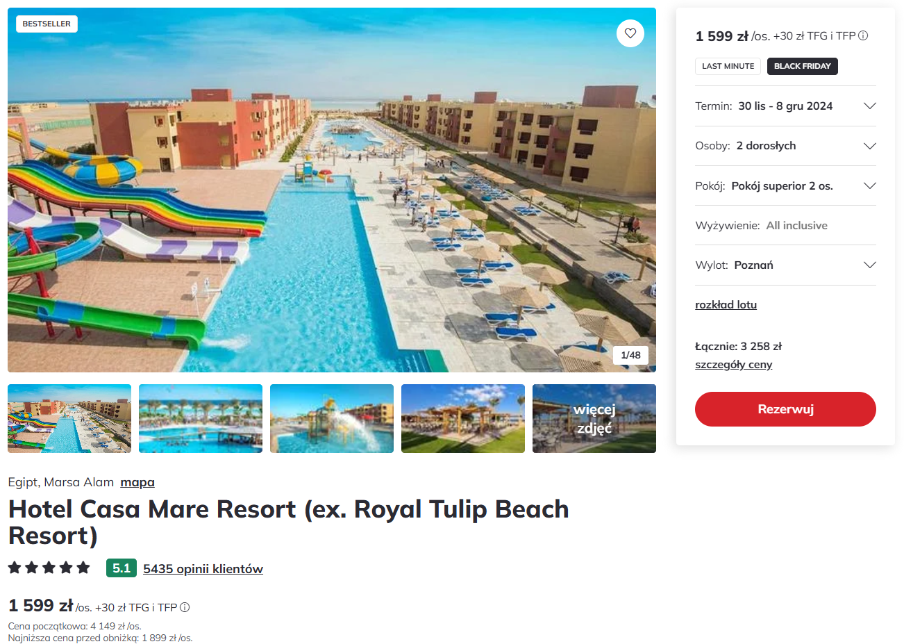 Jeśli na poniższym screenie widzisz miasto wylotu lub termin które Ci nie odpowiadają, po przejściu do oferty możesz samodzielnie zmienić parametry wycieczki - często wtedy cena także jest bardzo atrakcyjna.