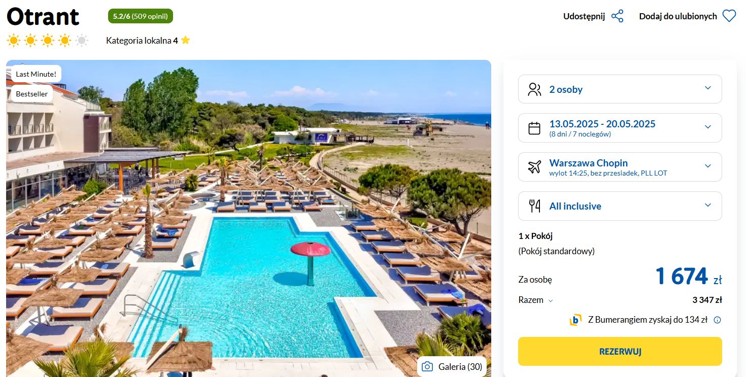W cenie macie kompletną wycieczkę z dużym bagażem rejestrowanym. Przy zakupie on-line, po przejściu do oferty, część kwoty wróci do Was dzięki programowi Bumerang biura podróży Rainbow.