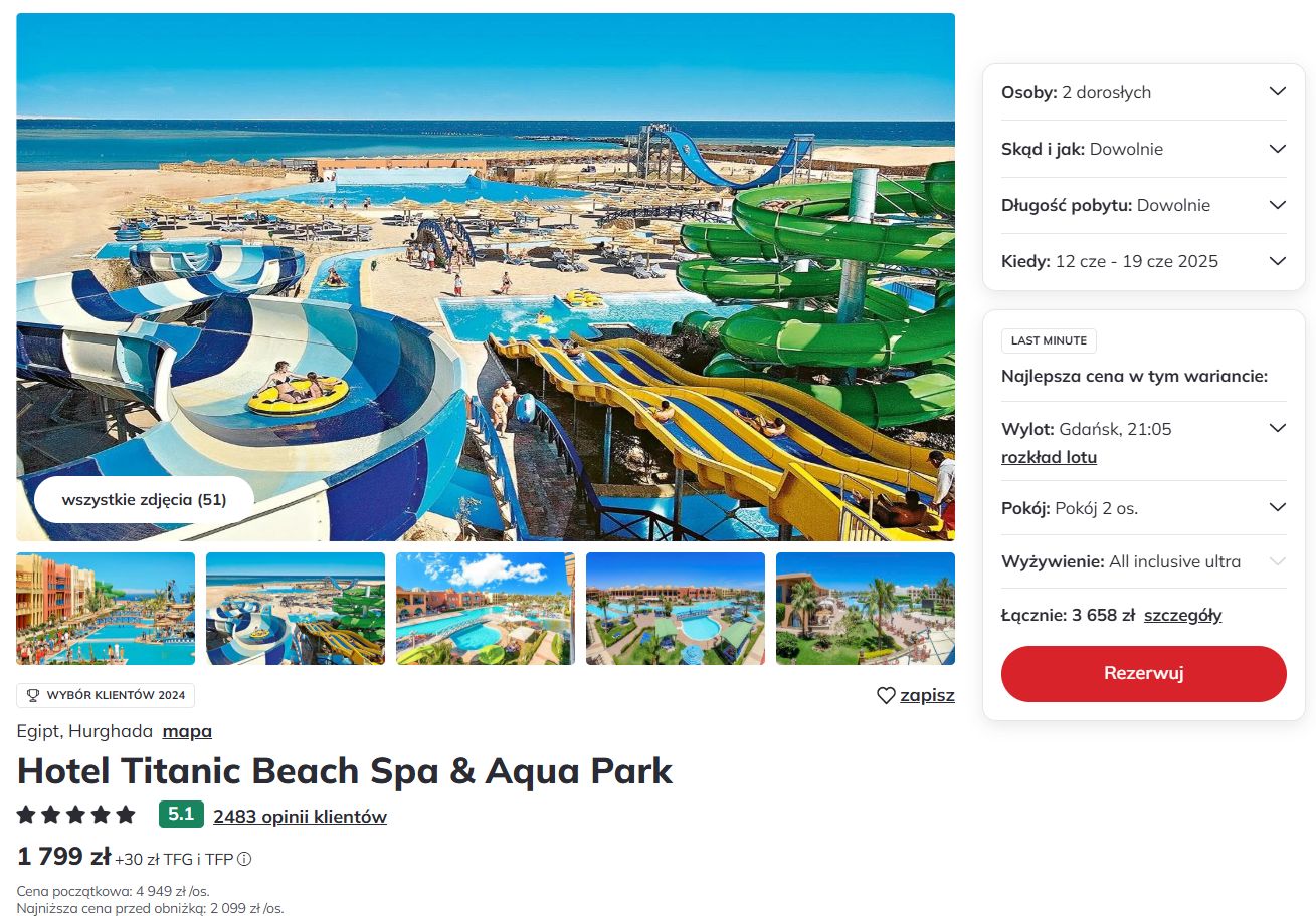 Podsumowując, Titanic Beach Spa & Aqua Park to pięciogwiazdkowy resort, który oferuje bogaty pakiet udogodnień dla gości w różnym wieku – od ogromnego aquaparku, przez komfortowe zakwaterowanie, po całodobową formułę wyżywienia Ultra All Inclusive. Goście doceniają czystość, profesjonalizm personelu i różnorodność atrakcji, które zapewniają pełne wakacyjne doświadczenie. Pojedyncze uwagi dotyczące starszego wystroju części pokoi oraz niewielkich kolejek w restauracji w godzinach szczytu nie wpływają znacząco na całościowy, bardzo pozytywny odbiór obiektu.