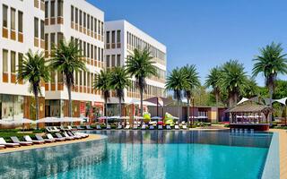 Na terenie kompleksu znajdują się aż 3 baseny zewnętrzne, w tym basen główny, basen relaksacyjny oraz brodzik dla dzieci, a także kryty basen idealny do pływania niezależnie od pogody. Dla najmłodszych przygotowano również strefę Aqua Splash z niewielkimi zjeżdżalniami i atrakcjami wodnymi. Wokół basenów rozciąga się duży taras słoneczny z leżakami i parasolami, a bary przy basenie oferują orzeźwiające napoje i przekąski. Goście mają także dostęp do siłowni, sali gier, boisk sportowych i programu animacyjnego, dzięki czemu zarówno dorośli, jak i dzieci mogą aktywnie spędzać czas.