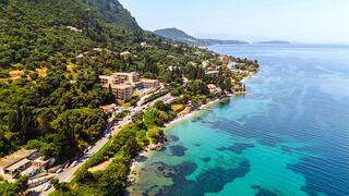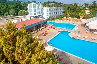 Plaża znajduje się w odległości około 900 metrów od hotelu, a spacer zajmuje około 10–15 minut. W okolicy znajduje się kilka nadmorskich kąpielisk z piaszczysto-żwirowym wybrzeżem i łagodnym zejściem do morza, w tym popularna plaża Alykes. Goście podkreślają czystość wody i wygodę kąpieli, a także możliwość wynajęcia leżaków i parasoli. W sezonie dostępne są również bary i sporty wodne.