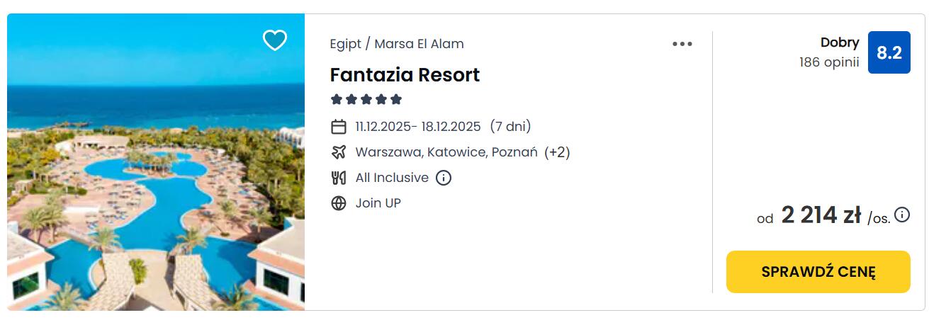 Ciekawa propozycja na wakacje w Marsa Alam w Egipcie w wersji luksusowej, odpoczniecie w bardzo dobrze ocenianym, położonym przy plaży z rafą koralową 5* hotelu Fantazia Resort z All inclusive. Hotel oferuje m.in.: 3 baseny, 28 zjeżdżalni wodnych, atrakcje dla dzieci, bogatą ofertę sportową, animacje występy i pokazy na żywo, strefę De Lux tylko dla dorosłych, 2 restauracje, 8 barów. Ocena gości: 8,8/10 na Booking.com i 4,5/5 w Google.com.