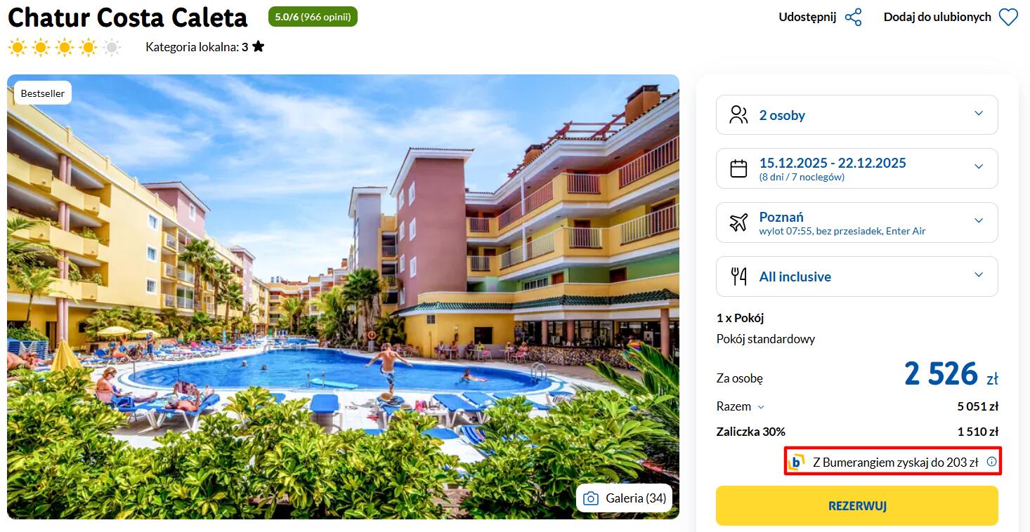 Przy rezerwacji on-line, po przejściu do oferty, część kwoty wróci do Was dzięki programowi Bumerang biura podróży Rainbow.