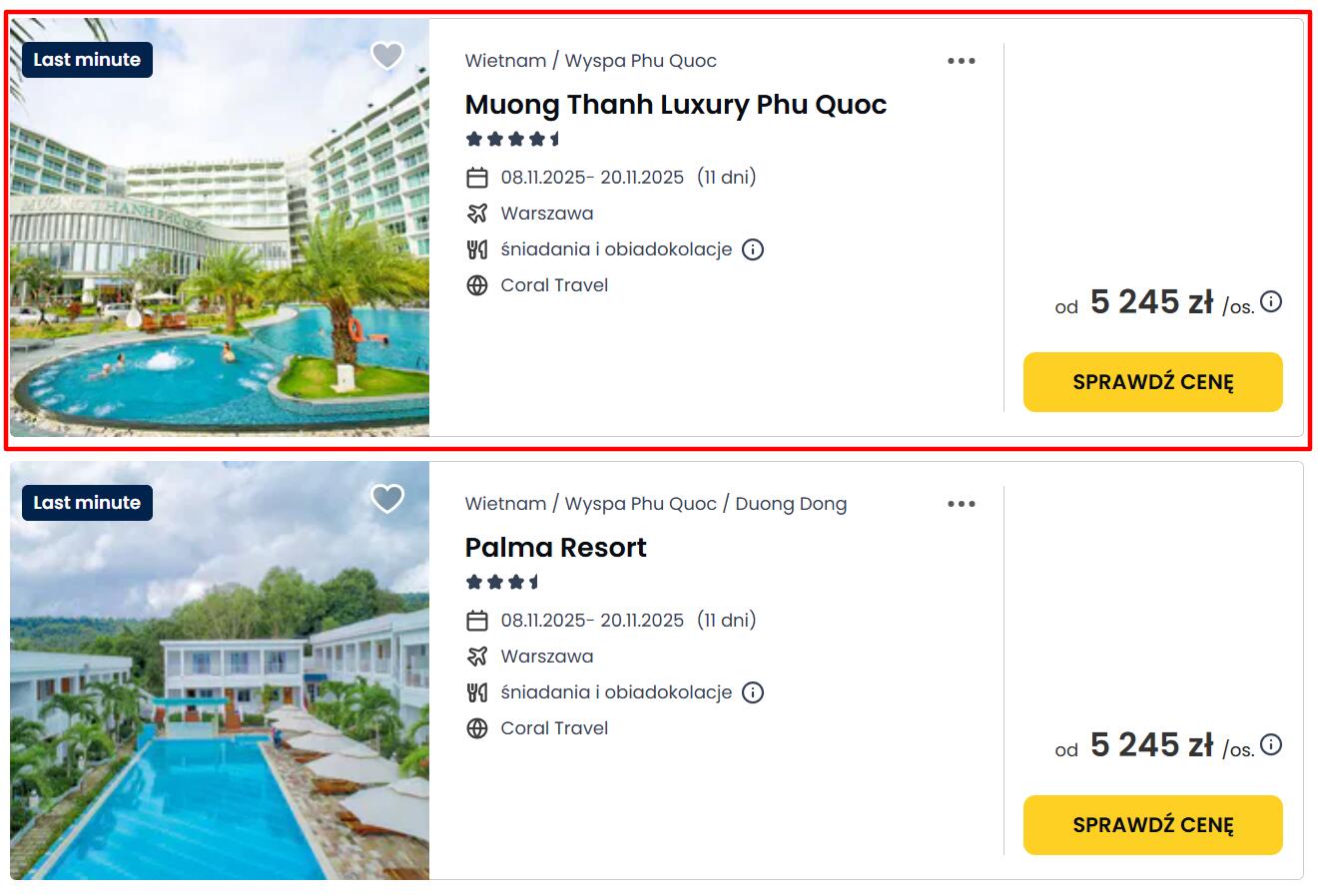 Propozycja na wakacje w Wietnamie koło której nie można przejść obojętnie, dłuższy 11-dniowy urlop spędzisz w luksusowym 4* hotelu Muong Thanh Luxury Phu Quoc z wyżywieniem HB. Hotel położony jest 200 metrów od piaszczystej plaży, oferuje m.in.: 2 baseny (w tym jeden dla dzieci), 2 bary, restaurację, a także pełne spa i centrum fitness. W cenie wycieczka z bagażem rejestrowanym, przelot odbywa się wygodnym Dreamlinerem LOT-u.