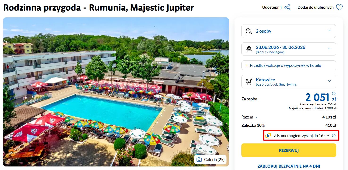 Przy zakupie on-line, po przejściu do oferty, część kwoty wróci do Was dzięki programowi Bumerang biura podróży Rainbow.