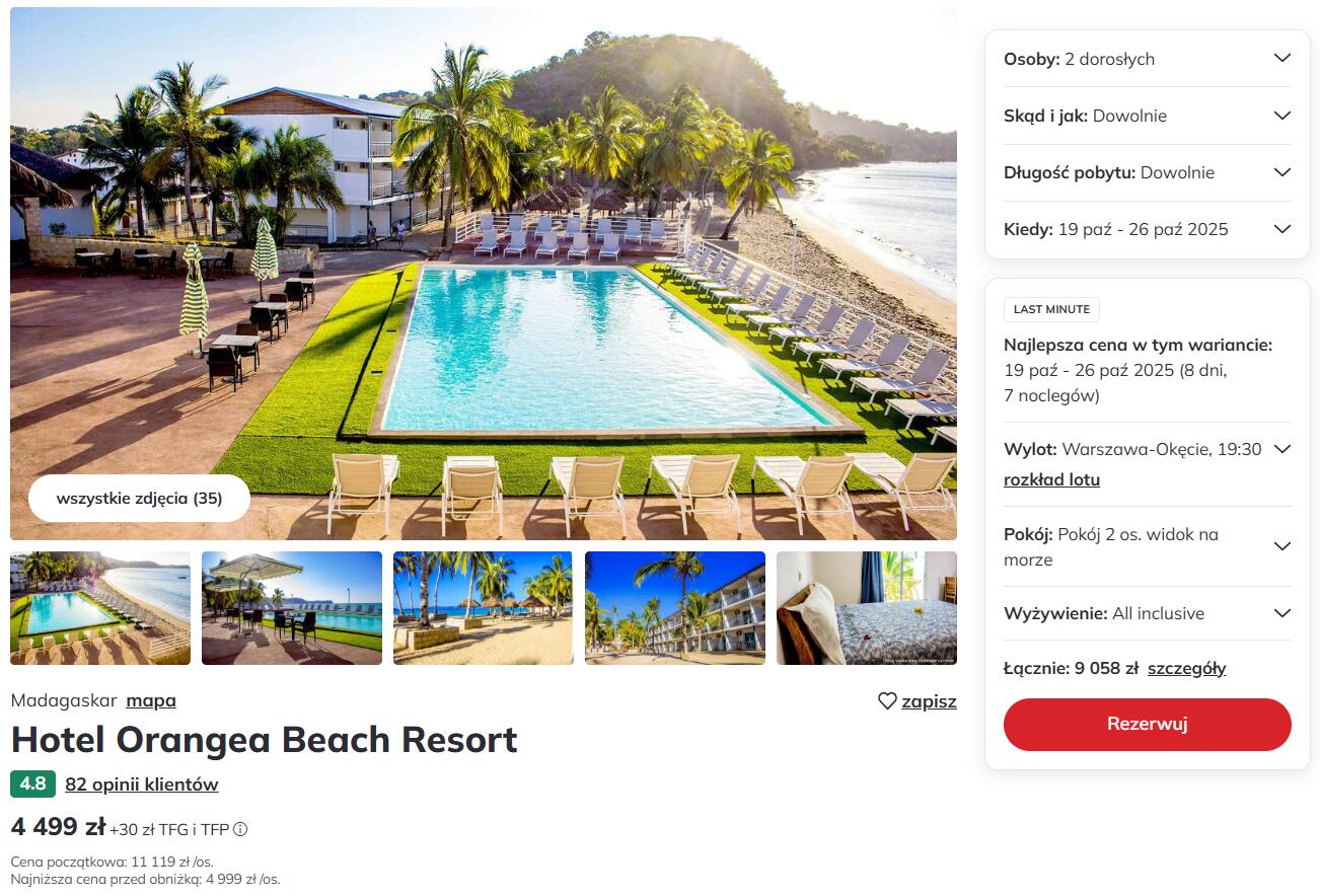 Odkryjcie egzotyczny Madagaskar w interesującej naszym zdaniem cenie, tygodniowe wakacje spędzicie w bardzo dobrym, położonym przy plaży 3* hotelu Orangea Beach Resort z All inclusive. W hotelu znajdziecie m.in.: basen tuż przy plaży, restaurację, bar, bezpłatne Wi-Fi. Ocena gości: 4,5/5 w Google.