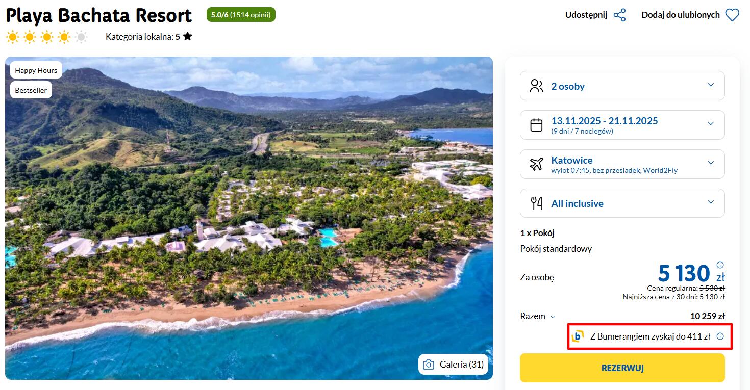 W cenie macie kompletną wycieczkę, a przy zakupie on-line, po przejściu do oferty, część kwoty wróci do Was dzięki programowi Bumerang biura podróży Rainbow.