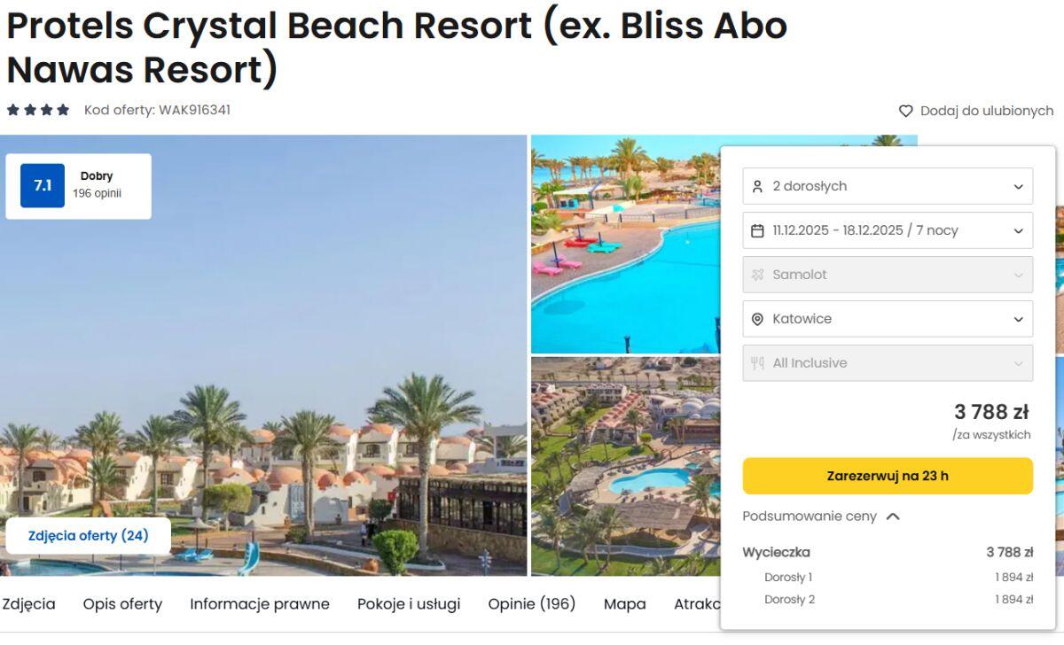 Goście chwalą 4* hotel Protels Crystal Beach Resort za jego doskonałe położenie bezpośrednio przy plaży z dostępem do rafy koralowej, jednej z najpiękniejszych w rejonie Marsa Alam. Hotel położony jest w spokojnej, nadmorskiej okolicy, idealnej do relaksu i kąpieli słonecznych, a jednocześnie stanowi świetną bazę dla miłośników nurkowania i snorkelingu. Turkusowe wody Morza Czerwonego, własne molo prowadzące wprost nad rafę oraz malownicze widoki sprawiają, że to jedno z tych miejsc, gdzie można naprawdę poczuć magię Egiptu. To idealny wybór na wakacje w Egipcie All inclusive, zarówno dla rodzin, jak i dla par szukających komfortowego wypoczynku nad morzem.
