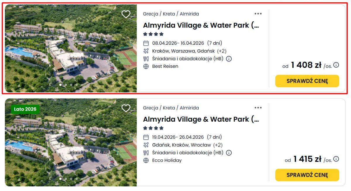 Interesująca propozycja cenowa na tygodniowy wypoczynek na Krecie w Grecji, odpoczniecie w położonym blisko piaszczystej plaży 4* hotelu Almyrida Village & Water Park z wyżywieniem HB (śniadania i obiadokolacje). Hotel oferuje m.in: duży basen, brodzik i plac zabaw dla dzieci, zjeżdżalnie wodne, restaurację, 2 bary, kort tenisowy, bezpłatne Wi-Fi.