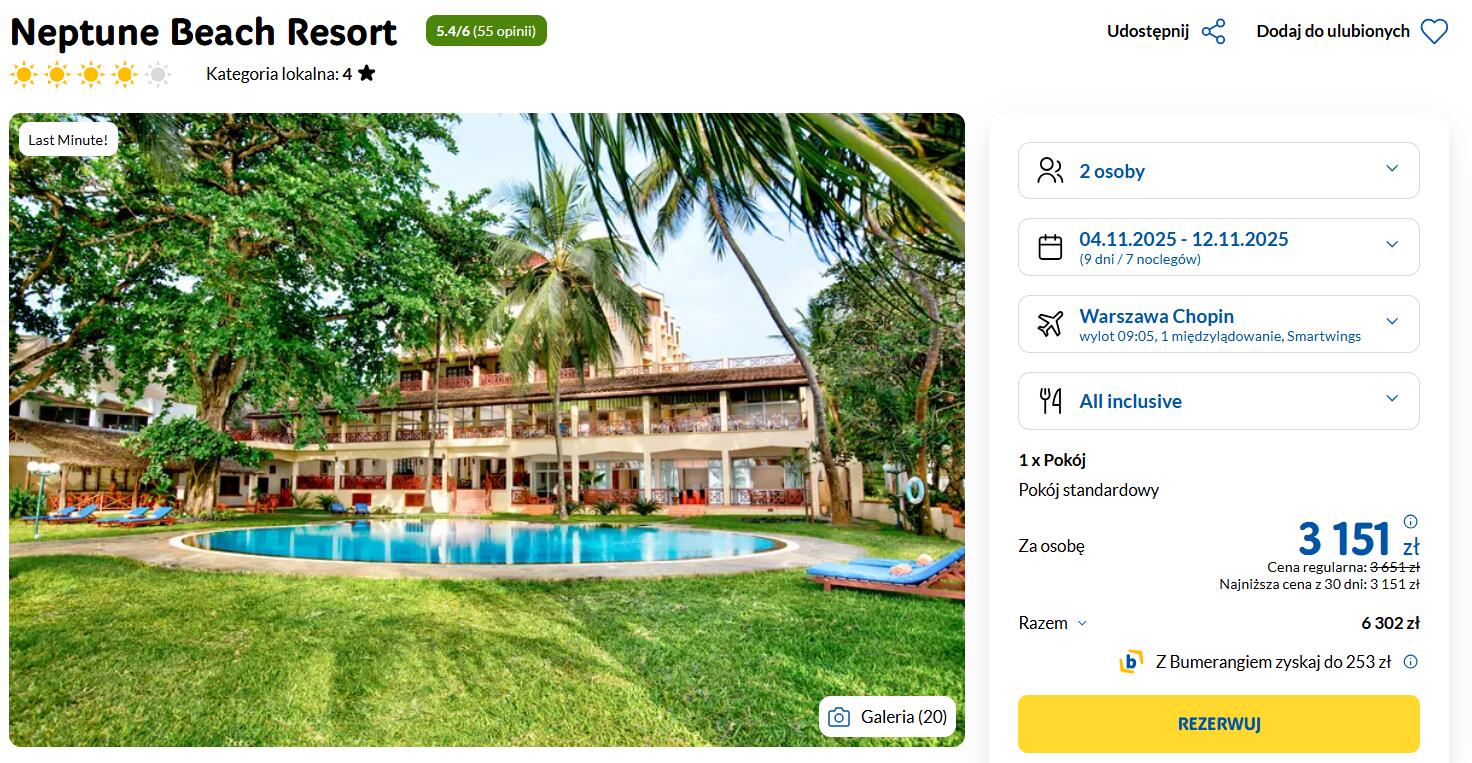 Ciekawa naszym zdaniem cena na tydzień egzotycznych wakacji w Kenii, odpoczniecie w położonym przy plaży, dobrze ocenianym przez gości, 4* hotelu Neptune Beach Resort z All inclusive. Hotel oferuje m.in.: basen z brodzikiem dla dzieci, 2 bary, animacje, występy zespołów muzycznych, pokazy akrobatyczne, dyskotekę. W cenie duży bagaż rejestrowany. Ocena gości hotelu, to 5,4/6 na R.pl i 8,2/10 na Booking.com.