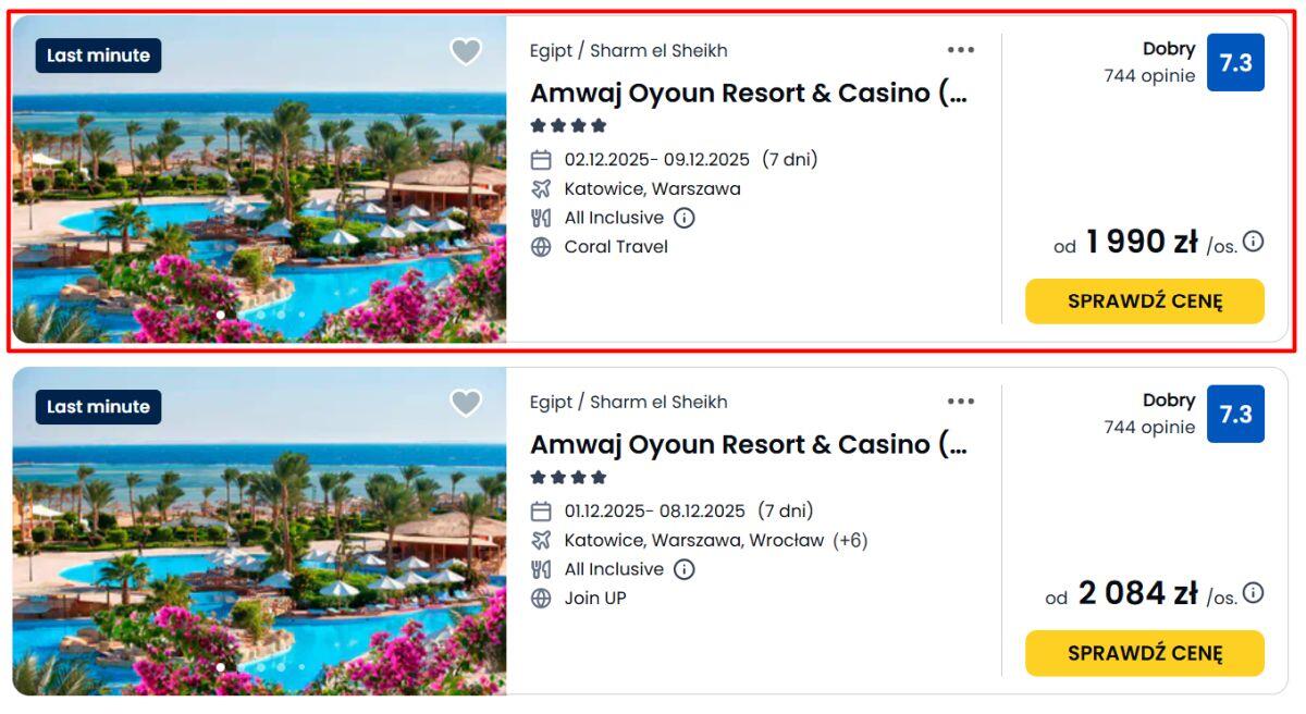 Interesująca naszym zdaniem cena na tygodniowe wakacje w Egipcie, w hotelu w którym znajdziecie atrakcje dla całej rodziny - odpoczniecie w dobrze ocenianym 5* Amwaj Oyoun Resort & Spa z All inclusive 24H. Hotel położony jest w Sharm el Sheikh przy plaży z rafą koralową, oferuje m.in.: 6 basenów (w tym podgrzewany), zjeżdżalnie wodne, 2 baseny dla dzieci, siłownię, program animacji, atrakcje dla dzieci (mini klub, plac zabaw, animacje), 3 restauracje, 8 barów. Jeśli chodzi o opinie gości, to w serwisie Booking.com jest oceniany na 8,6/10.