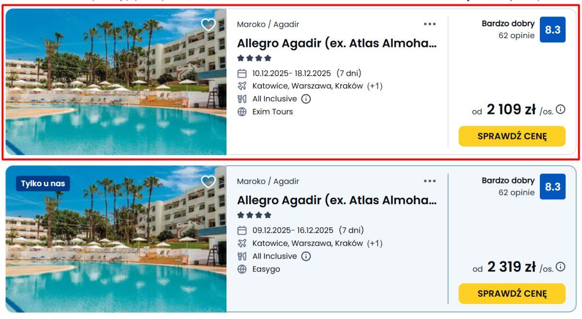 Podsumowując, Allegro Agadir to czterogwiazdkowy hotel oferujący komfortowe wakacje All Inclusive w Maroku, z bliskością plaży, dobrym zapleczem rekreacyjnym i pyszną kuchnią. Goście chwalą położenie, obsługę oraz stosunek jakości do ceny. Nieliczni wspominają, że pokoje mogą być nieco mniejsze niż w luksusowych resortach, ale większość uważa, że atmosfera, lokalizacja i oferta w pełni rekompensują tę drobną niedogodność - to świetna opcja na słoneczne, egzotyczne wakacje.