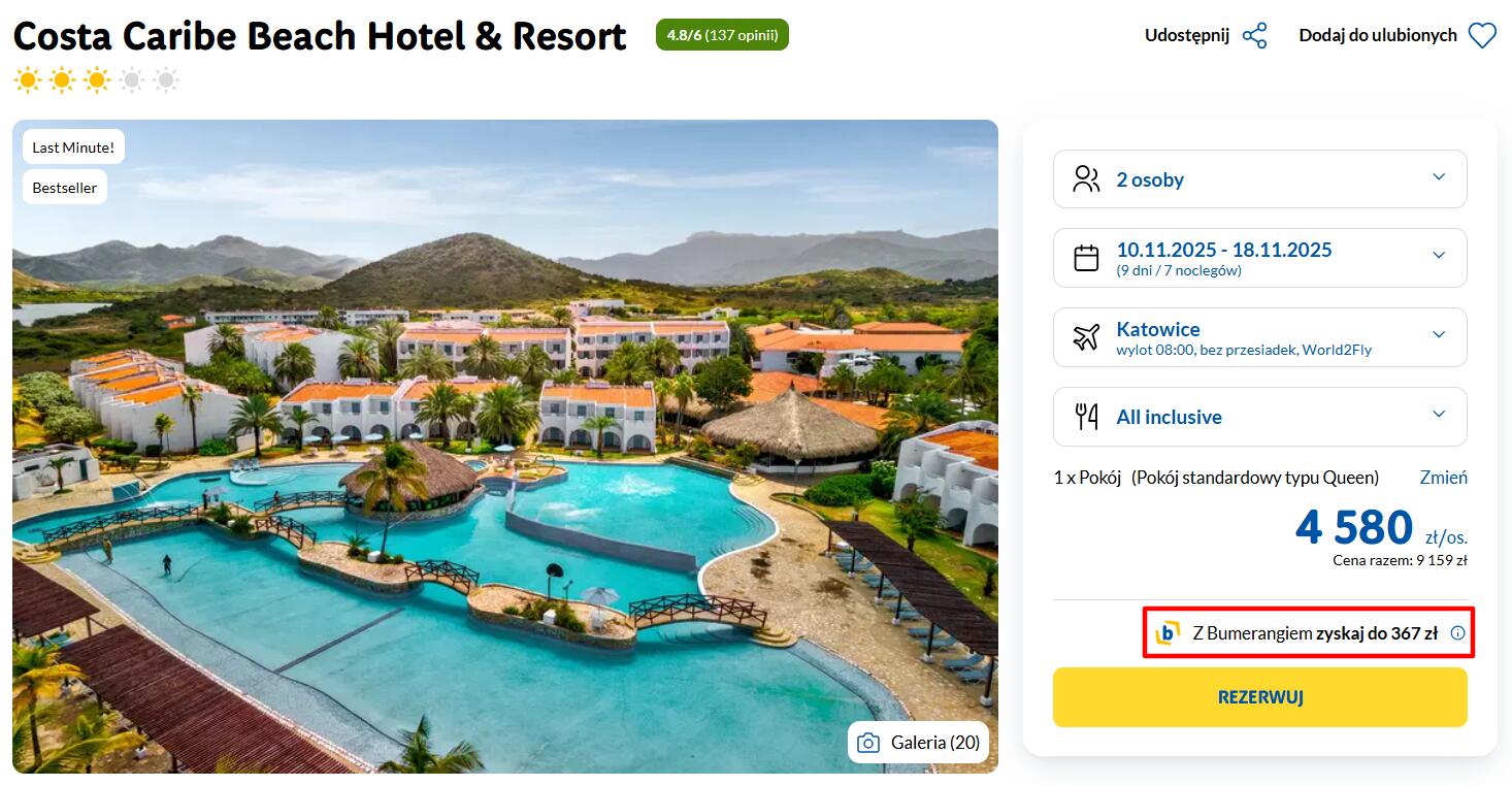 Przy rezerwacji on-line, po przejściu do oferty, część kwoty wróci do Was dzięki programowi Bumerang biura podróży Rainbow.