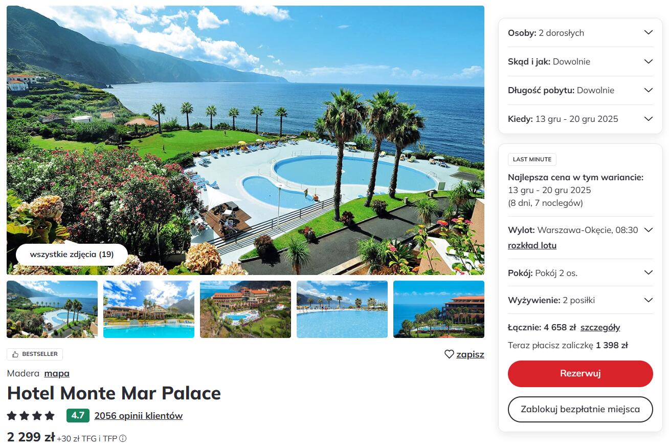 Podsumowując, 4* hotel Monte Mar Palace to propozycja przede wszystkim dla osób szukających ciszy, spektakularnych widoków na Atlantyk, spokojnych basenów i bliskości natury, z komfortowymi pokojami i solidnym wyżywieniem HB. Trzeba jednak pamiętać, że obiekt leży z dala od większych kurortów, wymaga dłuższego transferu z lotniska, a w okolicy nie ma szerokiej piaszczystej plaży, więc oferta rozrywkowa i udogodnienia dla dzieci są bardziej kameralne, a sam hotel jest już miejscami nieco wysłużony, choć zadbany. Dla osób nastawionych na zwiedzanie wyspy, spacery i wypoczynek przy basenie z widokiem na ocean jest to bardzo ciekawy wybór na spokojne wakacje na Maderze.