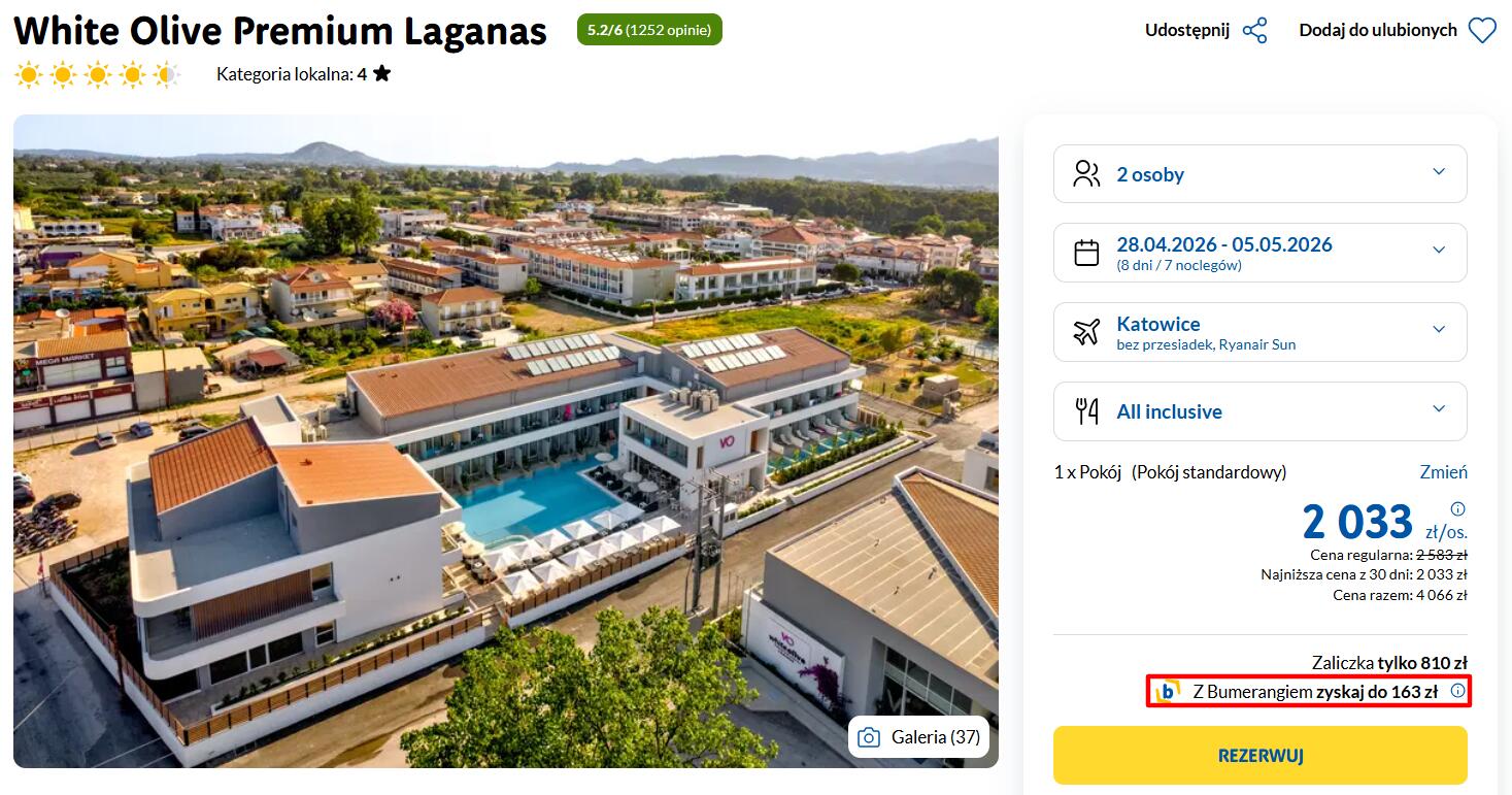 W cenie macie kompletną wycieczkę, a przy rezerwacji on-line, po przejściu do oferty, część kwoty wróci do Was dzięki programowi Bumerang biura podróży Rainbow.
