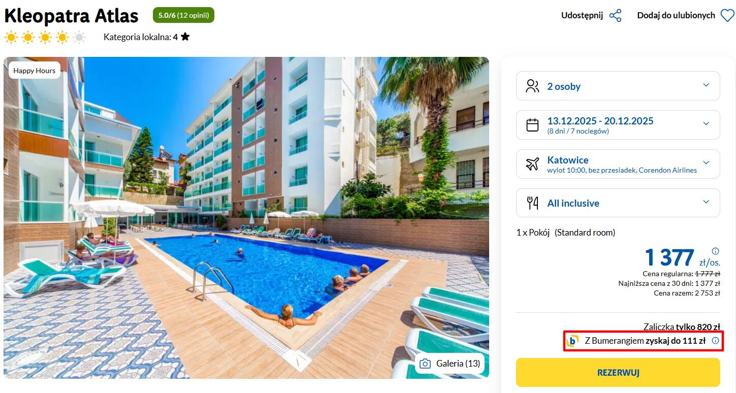 W cenie kompletna wycieczka, a przy rezerwacji on-line, po przejściu do oferty, część kwoty wróci do Was dzięki programowi Bumerang biura podróży Rainbow.