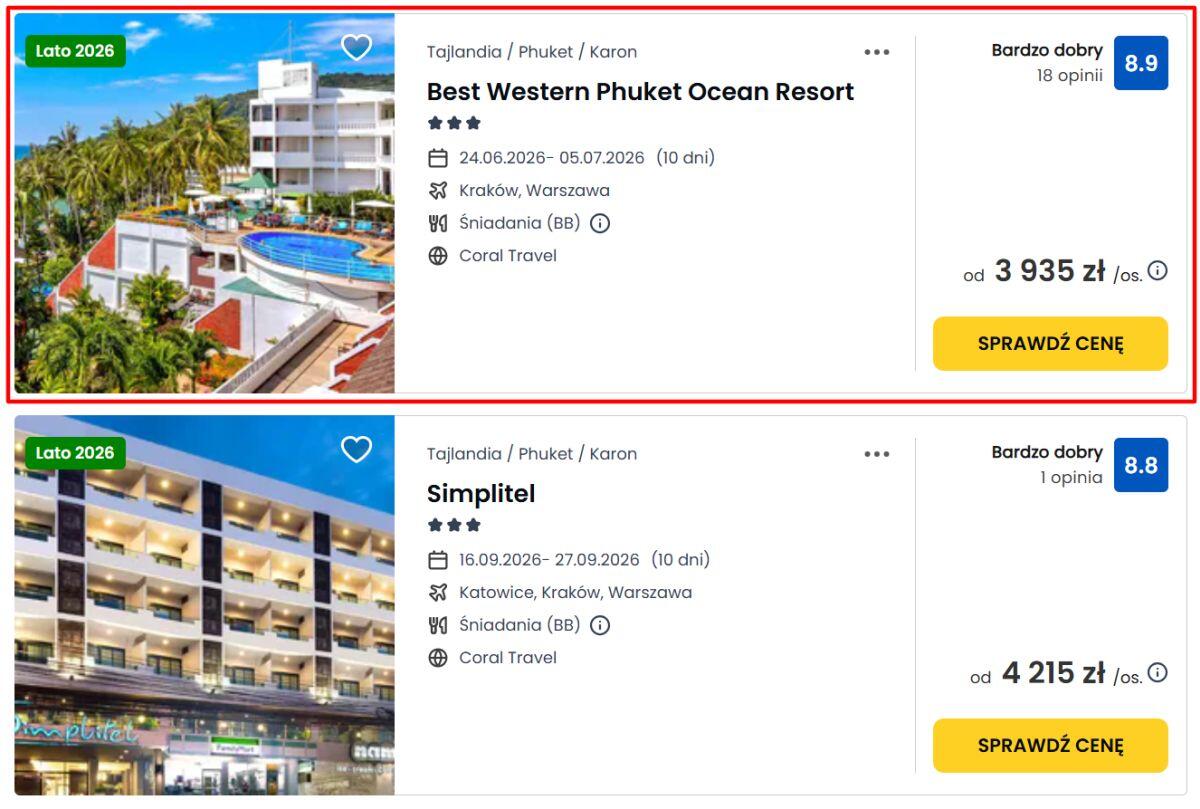 My przy tej okazji chcemy przedstawić Wam jedną z możliwości, którą jest wycieczka na 10 dni do bardzo dobrego (nota 8,9/10 na Wakacje.pl) 3* hotelu Best Western Phuket Ocean Resort ze śniadaniami. Hotel znajduje się 300 metrów od plaży, znajdziecie w nim między innymi: 3 baseny, brodzik dla dzieci, bezpłatne Wi-Fi, restaurację, bar. Co ważne, w cenie wycieczki wliczony jest bagaż rejestrowany.