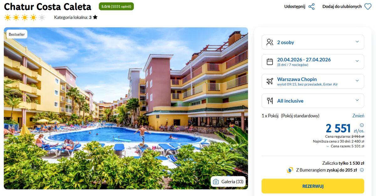Podsumowując, Chatur Costa Caleta to solidny hotel dla osób szukających komfortowego All inclusive na Fuerteventurze, z dobrą lokalizacją blisko lotniska i plaży oraz dodatkowymi udogodnieniami w postaci strefy 18+. Jako drobny minus goście wskazują prostszą infrastrukturę jednak stosunek ceny do jakości oceniany jest korzystny.