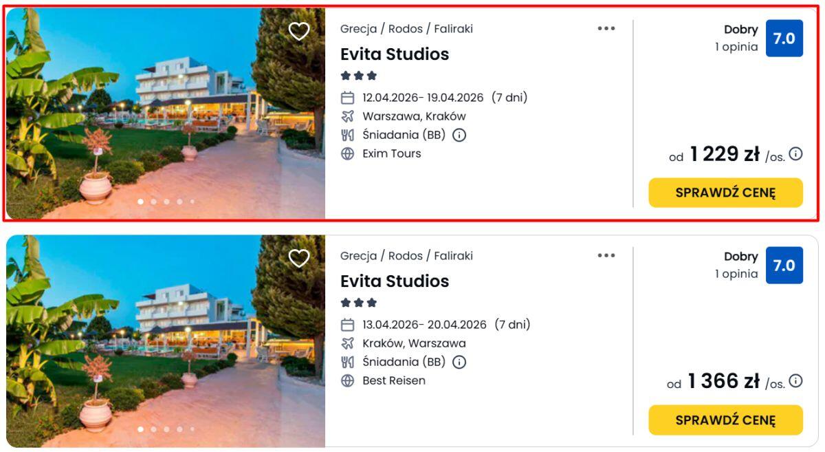 Spędź tydzień relaksu na słonecznym Rodos, gdzie znajdziesz komfortowe warunki oraz pyszną lokalną kuchnię. Miejscem Twoich wakacji będzie bardzo dobry (4,4/5 w Google.com) 3* hotel Evita Studios ze śniadaniami, to jedna z najlepiej ocenianych budżetowych perełek na Rodos.