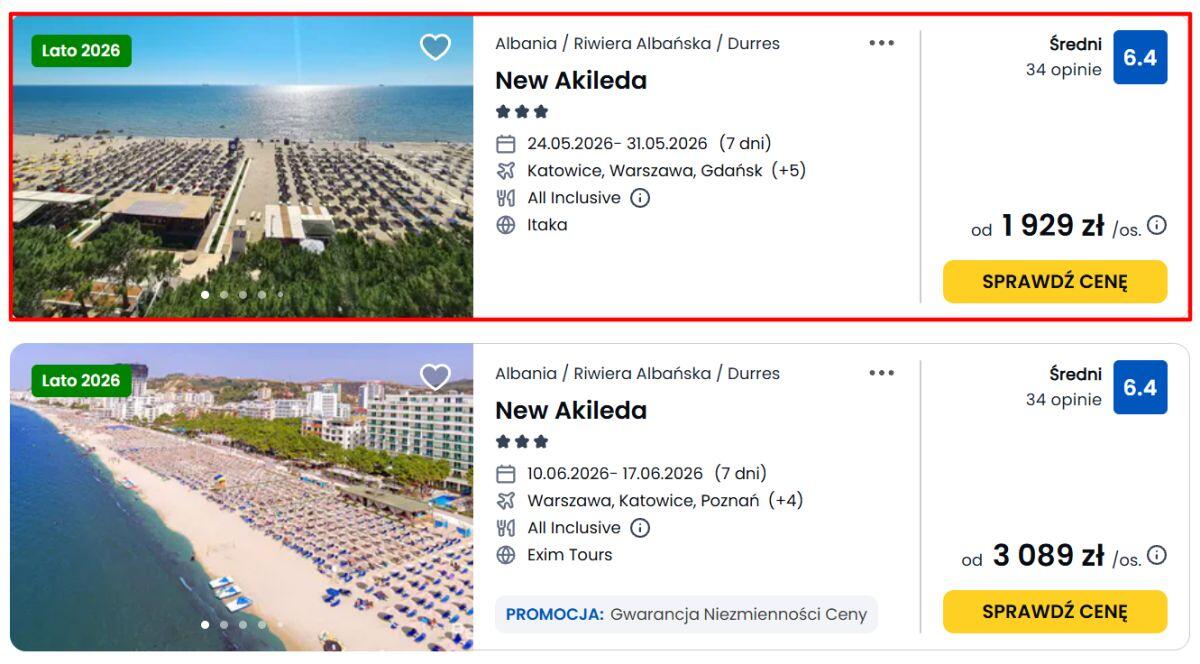 Nasz system nie wykrył dotychczas istotnych zmian ceny tej wycieczki.